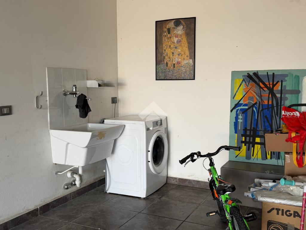 L'Appartamento, libero su tutti i lati, gode inoltre di doppio garage pavimentato con angolo lavanderia e basculante sezionale motorizzata;