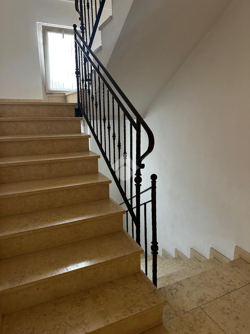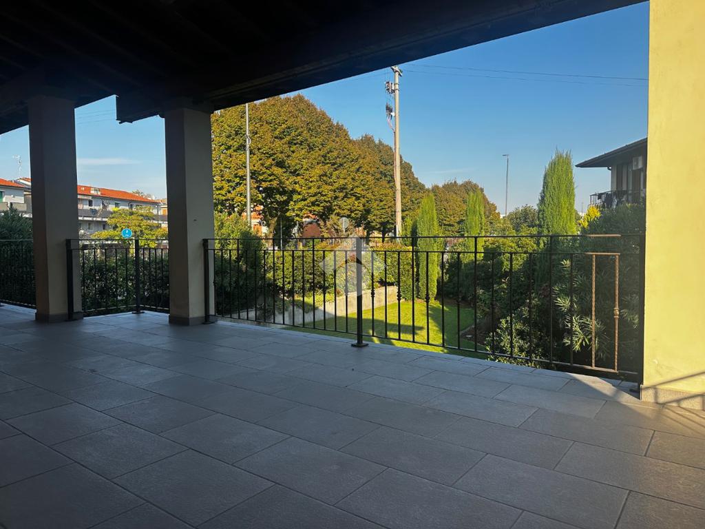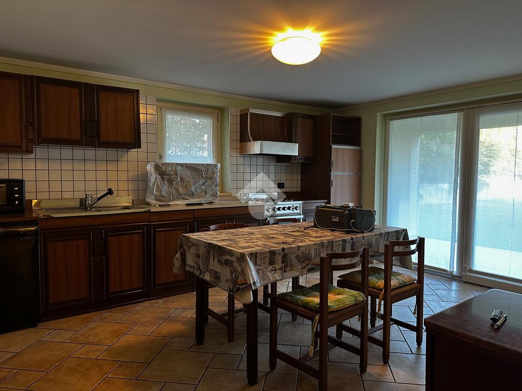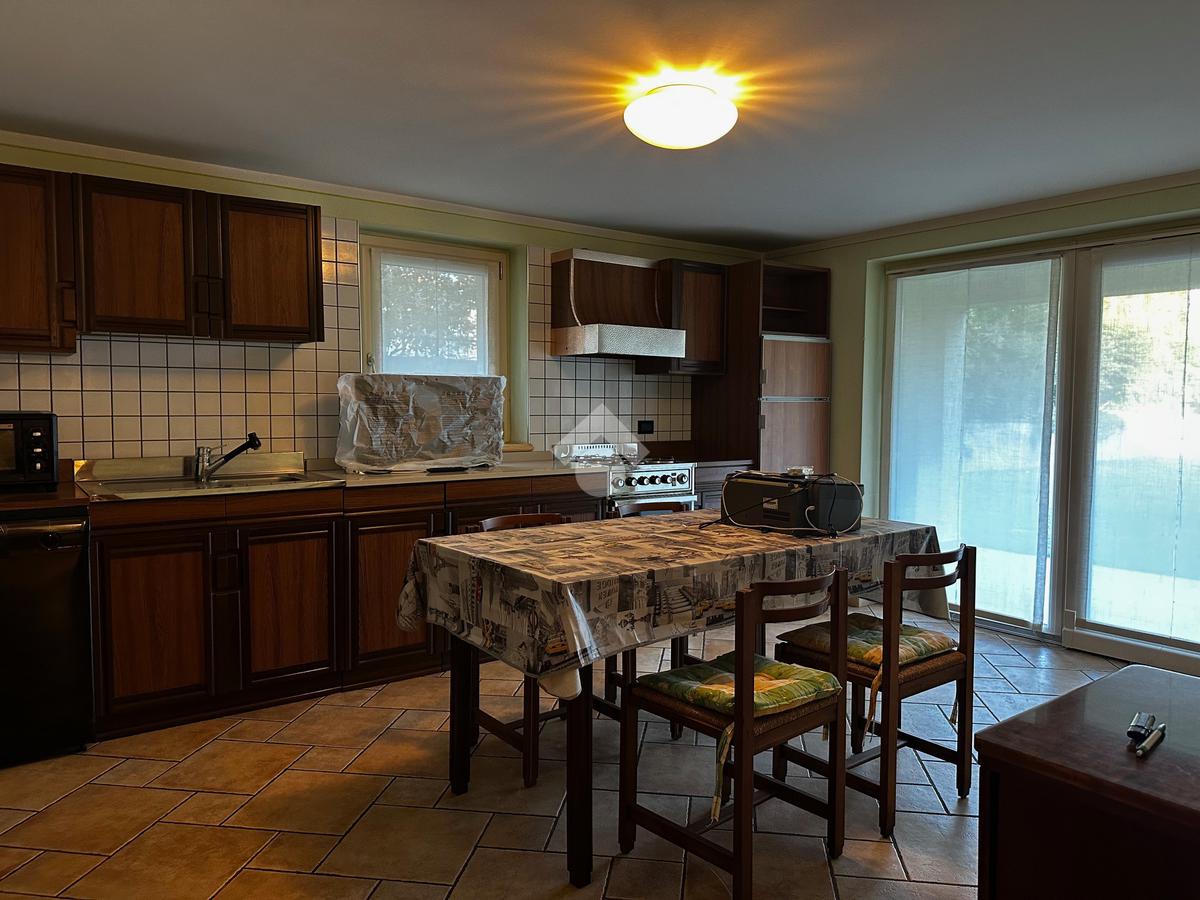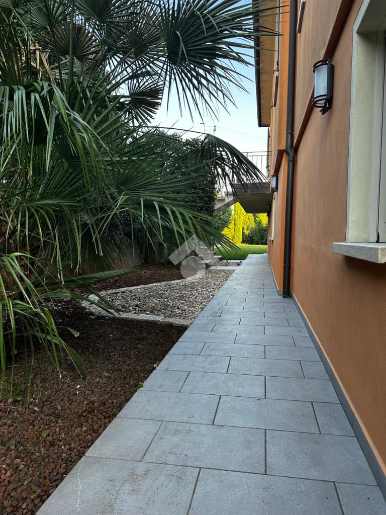 Dall'ingresso si accede direttamente al grande e luminoso salone con balcone; la cucina è separata, abitabile e affaccia sulla terrazza vivibile coperta fronte giardino.