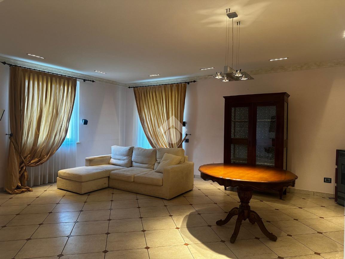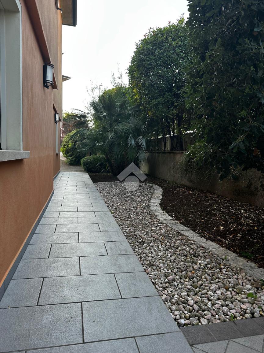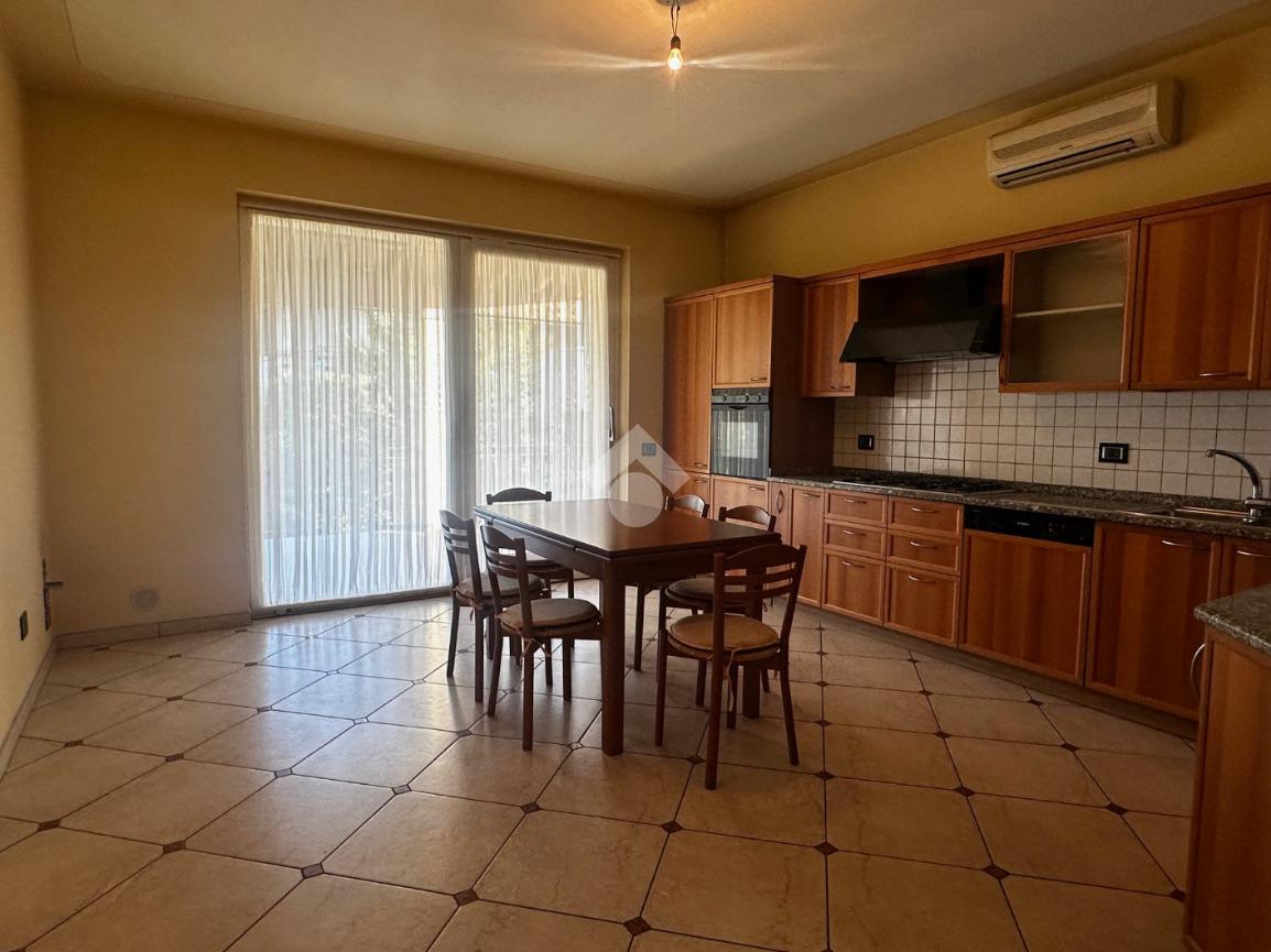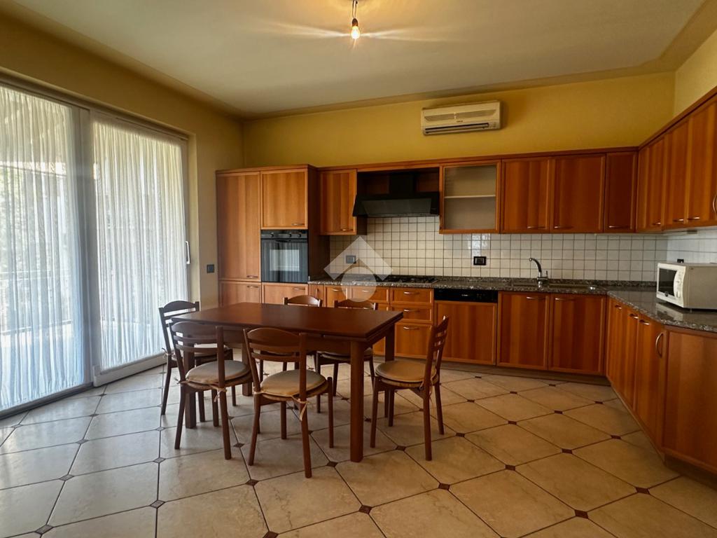 Dall'ingresso si accede direttamente al grande e luminoso salone con balcone; la cucina è separata, abitabile e affaccia sulla terrazza vivibile coperta fronte giardino.