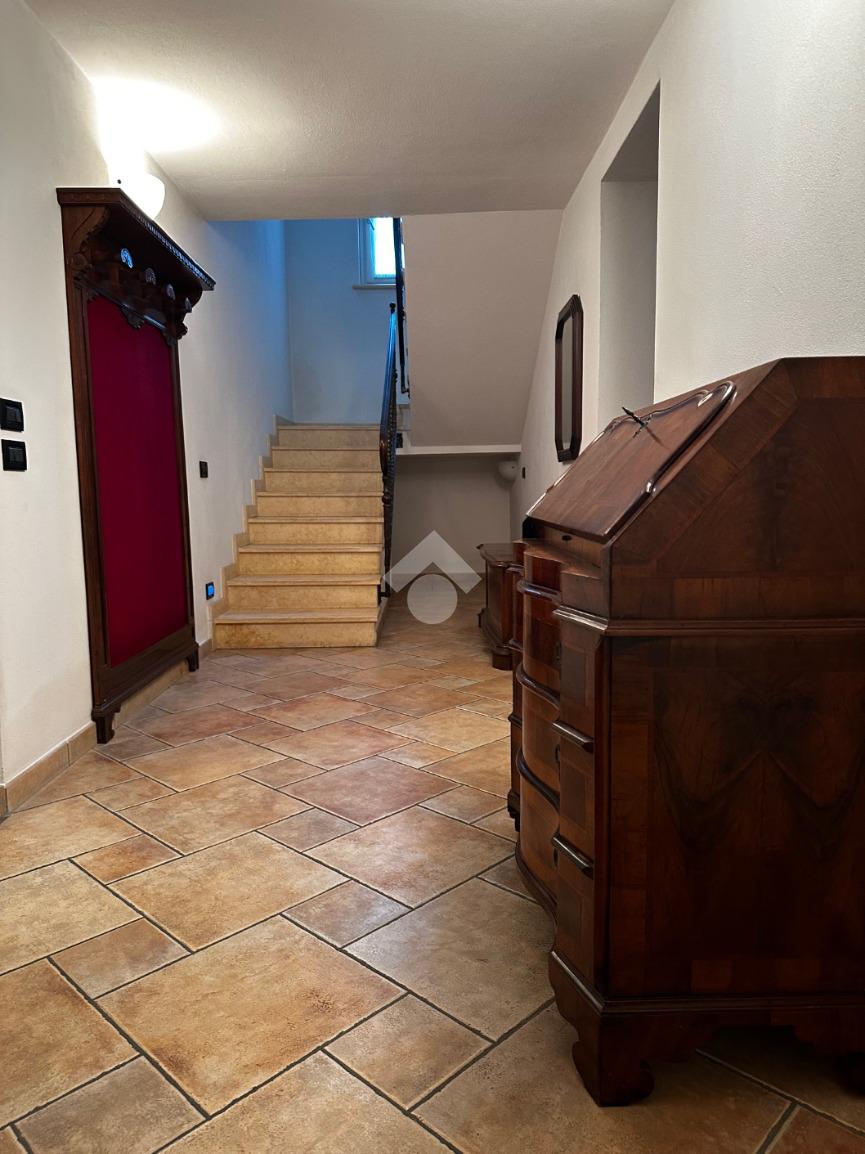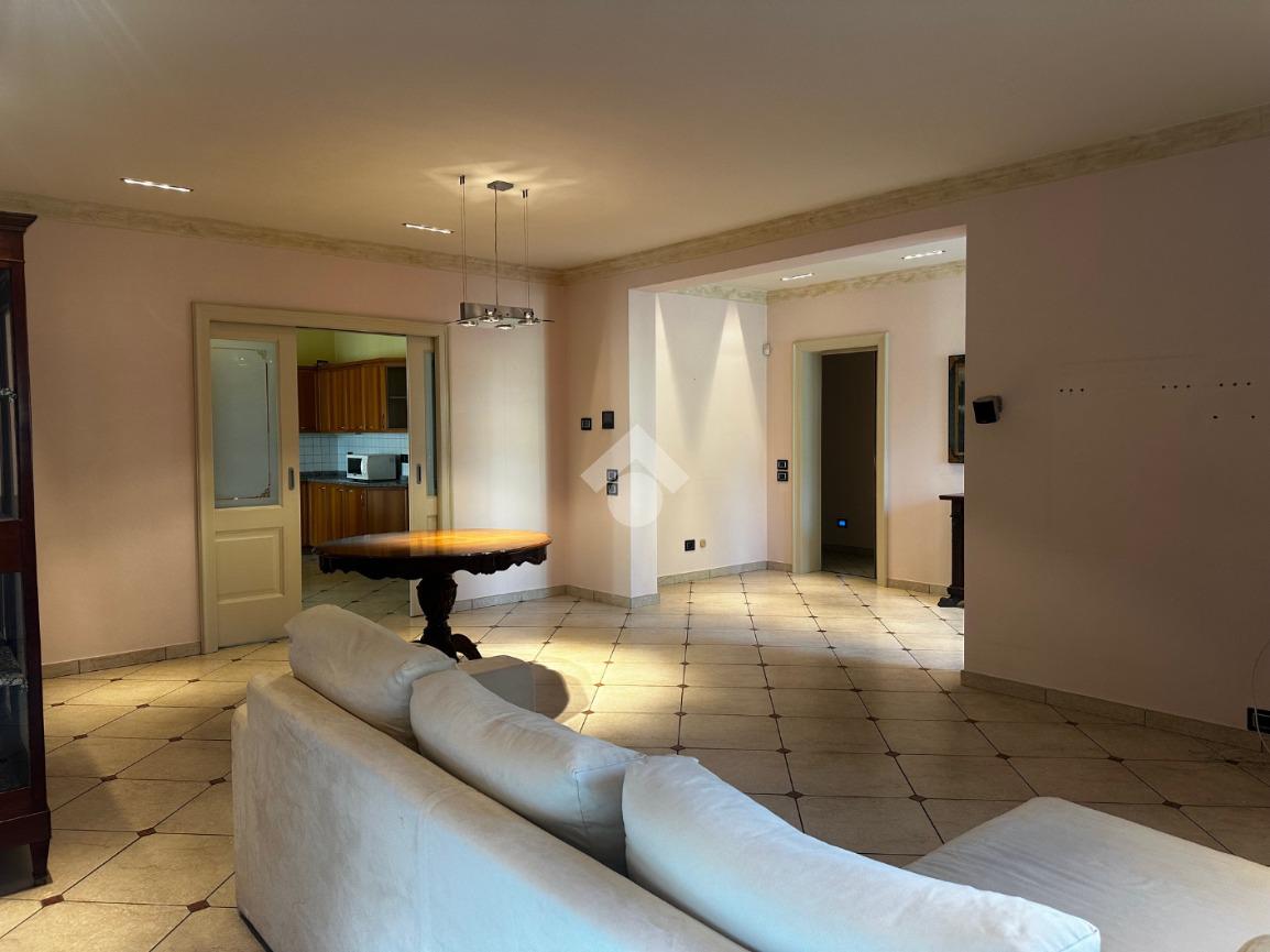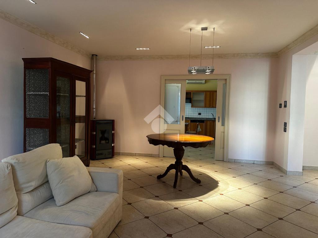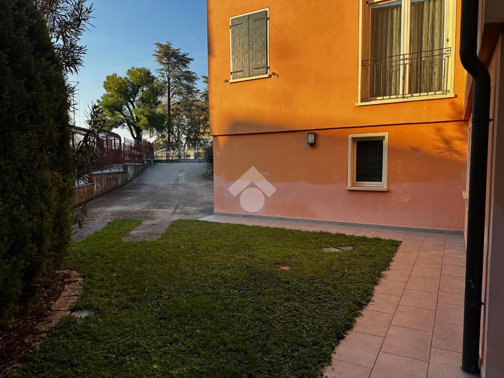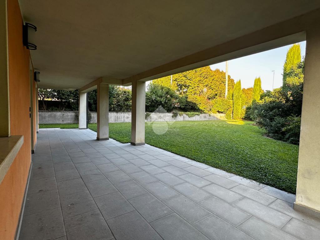 Dall'ingresso si accede direttamente al grande e luminoso salone con balcone; la cucina è separata, abitabile e affaccia sulla terrazza vivibile coperta fronte giardino.